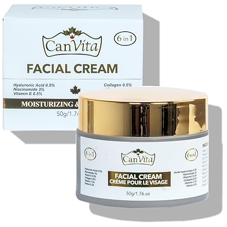 Canvita Facial Cream 5gm, Moisturizer for Men & Women, Hyaluronic Acid, Vitamin C, Vitamin E & Retinol – Anti Wrinkle, Anti-Aging